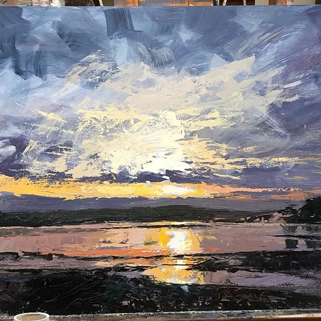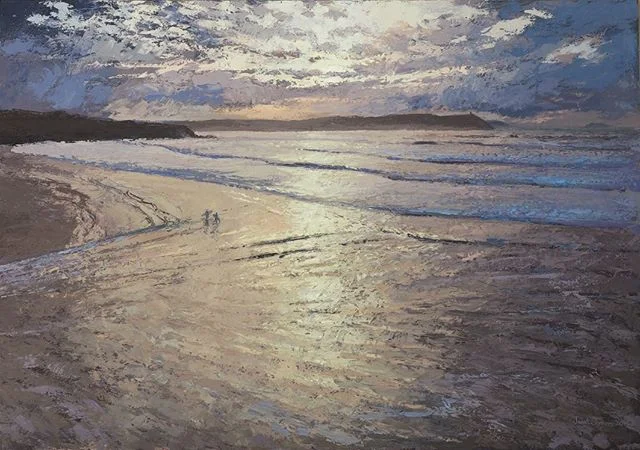 Janet’s skill as a draftswoman are evident in her rich studies of water, which elegantly capture the colour, light and atmosphere of the North Cornish coastline and stretches of the Estuary in various seasons.